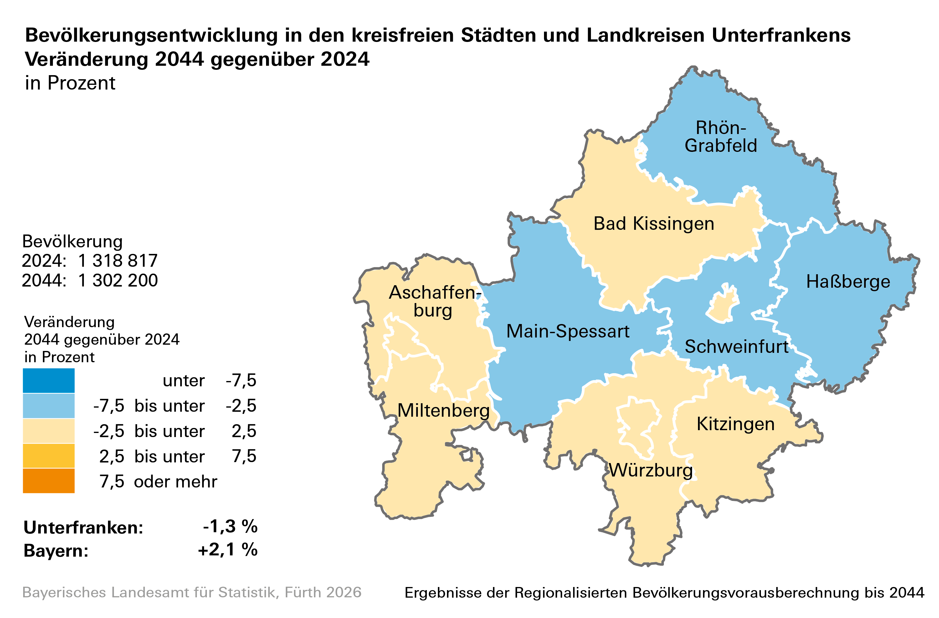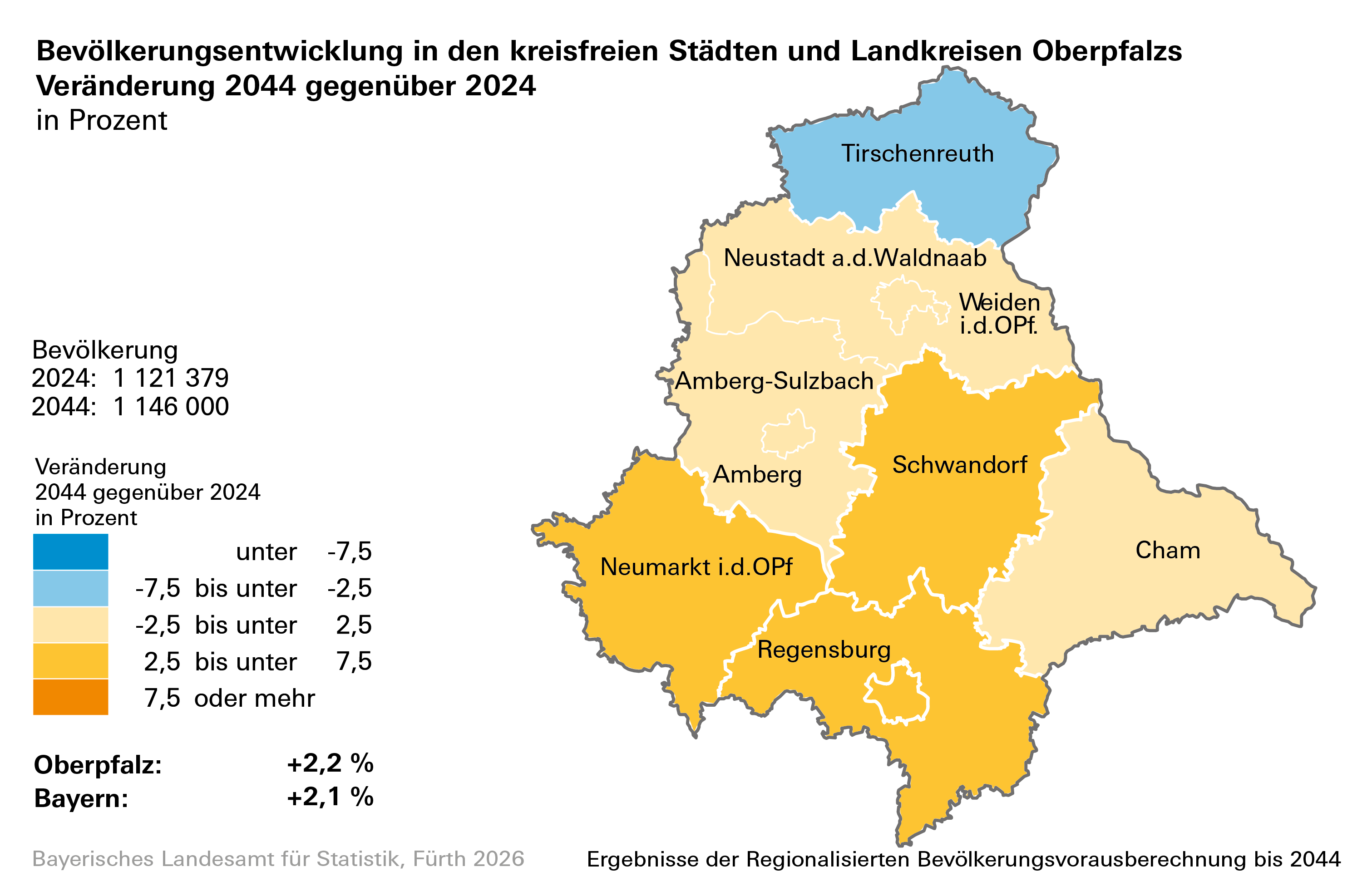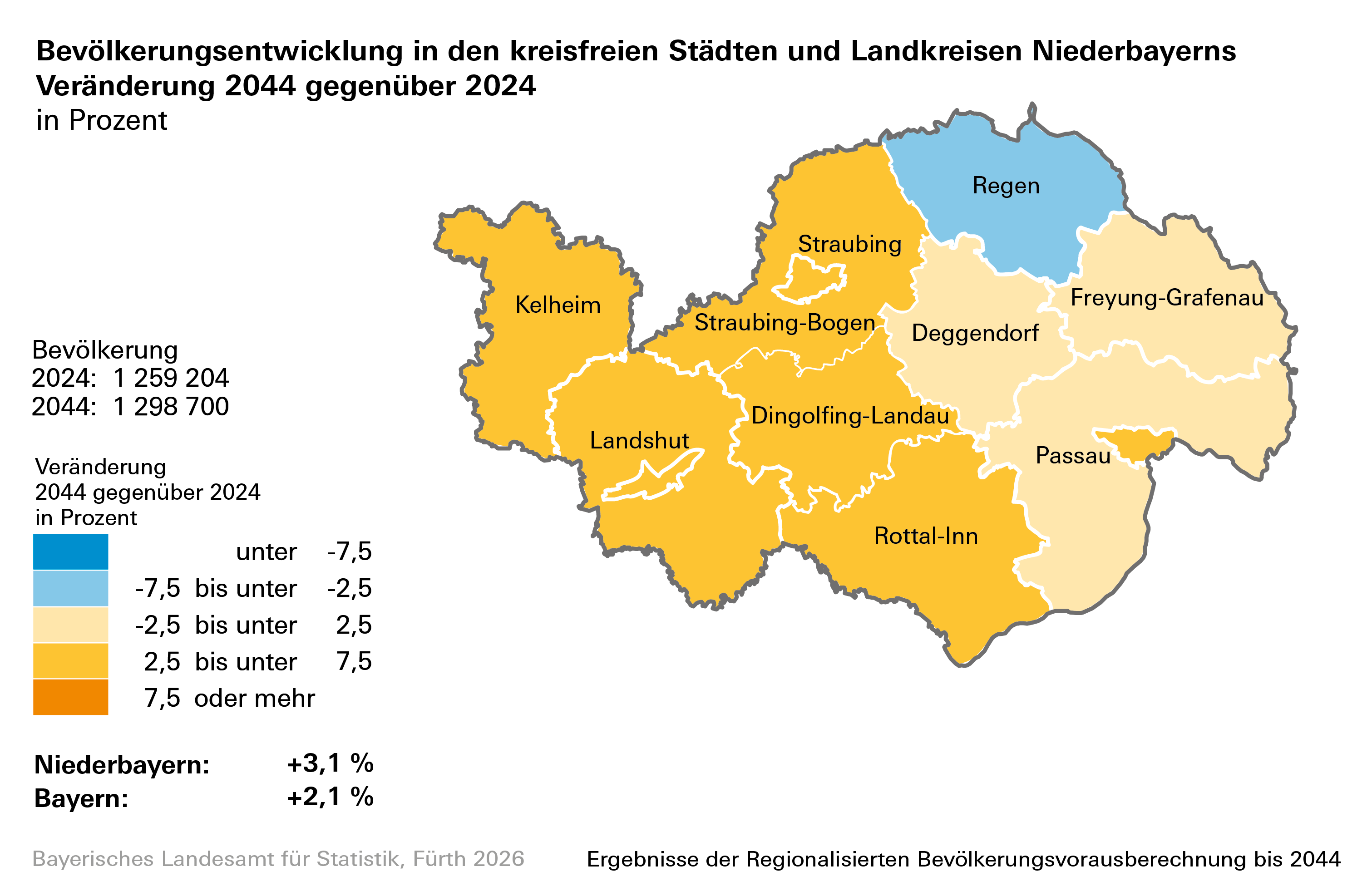 Ausführliche Ergebnisse zur Regionalisierten Bevölkerungsvorausberechnung enthält der Statistische Bericht „Beiträge zur Statistik Bayerns, Heft 559: Regionalisierte Bevölkerungsvorausberechnung für Bayern bis 2044“.