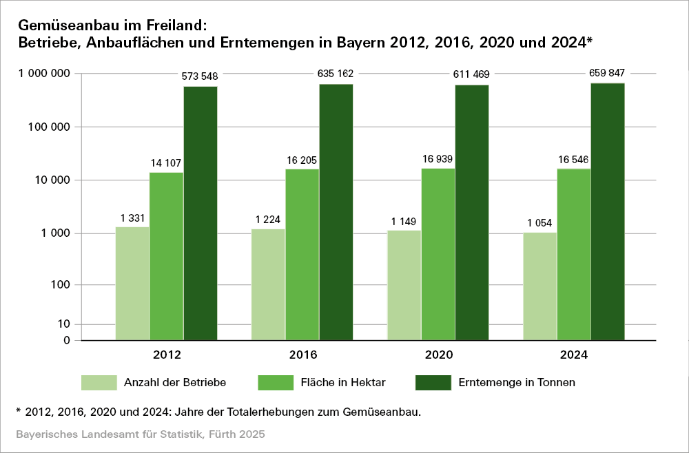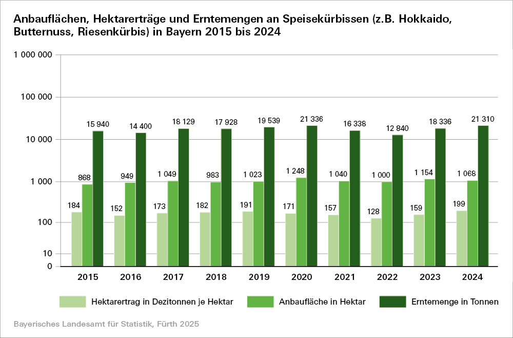 Die Erntestatistiken liefern Informationen über Hektarertrag und Ernte von Feldfrüchten und Grünland, Obst, Gemüse, Strauchbeeren und Wein. Ertragsschätzungen über Feldfrüchte und Grünland sowie über Obst, Hopfen und Wein erfolgen mehrmals im Jahr. Die Gemüseerhebung und die Strauchbeerenerhebung finden jährlich statt, wobei neben der Erntemenge auch die Anbaufläche erhoben wird. Weitere Statistiken der pflanzlichen Erzeugung sind die vierjährige Zierpflanzen- und Baumschulerhebung. Im Rahmen der Weinstatistiken werden neben der Erhebung der Weinmosternte und des Mostgewichts die Rebflächen, die Weinerzeugung sowie der Weinbestand jährlich durch Nutzung von Verwaltungsdaten ermittelt.