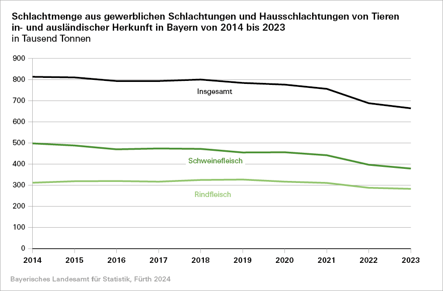 Die Anzahl der Schlachtungen sowie die Fleischerzeugung werden monatlich sekundärstatistisch  über die Schlachtungs- und Schlachtgewichtsstatistik ermittelt.  Gleichfalls monatlich werden im Rahmen der Erhebung in Unternehmen mit Hennenhaltung die Zahl der Legehennen und deren Eiererzeugung erhoben. Zudem findet jährlich eine Aquakulturstatistik statt, die u.a. Informationen über die in Aquakultur erzeugten Speisefische liefert.